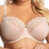 She is toooo gorgeous. White lace bra with a touch of blush undertone. Fabulous support