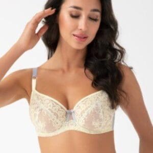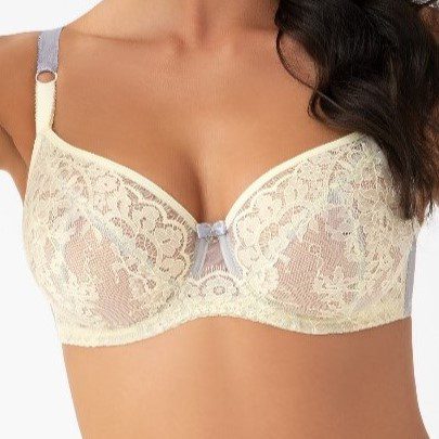 Soft lemon and grey lace bra. Fabulous support